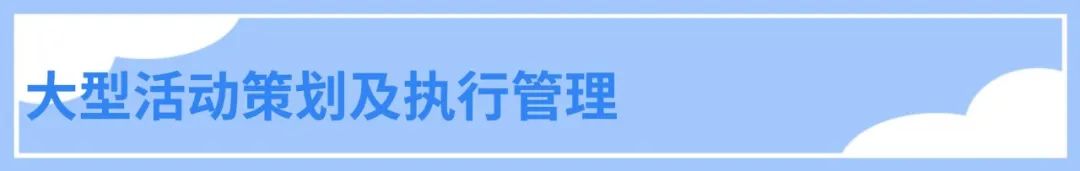 除了精心策划,有效执行管理是大型活动成功基础保障。有效执行管理:调查研究包括场地的选择与确定,主题确定及表达主题元素的构思,文案撰写,包括活动资源规划;所有参加活动人员及人力资源管理;项目分解与管理包括过程控制与管理;传播管理策略等等。详见《教材:专题活动策划及执行管理》。