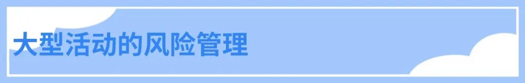 风险管理是大型活动策划极为重要的环节。拙作《大型公众活动风险管理策略》文中通过对公共关系,管理学专家、教授关于风险管理文献梳理和对2008年北京奥运会和2010年上海世博会风险预警管理案例以及典型的企业活动风险管理个案分析研究。研究得出:①法律及管理制度是大型公众活动风险管理的基础。②科学的策划,专业的流程管理是最有效的风险管理措施。③大型公众活动生命周期管理理论凸显了不同时期的管理重点及资源投入。④预防,缩减,转移同样是大型公众活动风险管理的基本策略。⑤风险管理需要有足够的风险管理投资。⑥风险管理的最高境界是防止风险的发生。详见《大型公众活动风险管理策略》。